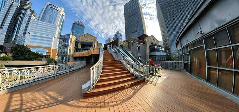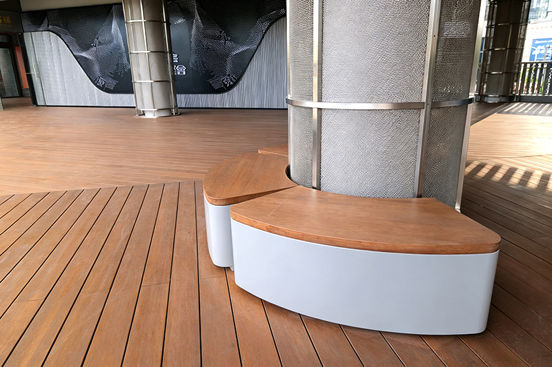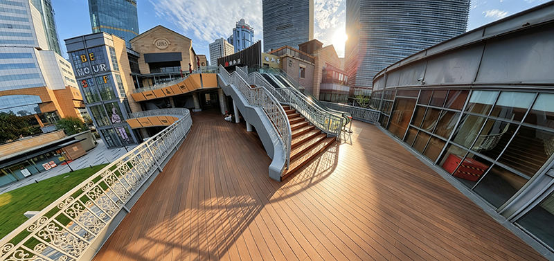 Resiste la gran afluencia de personas, el impacto de las multitudes y la exposición al sol y la lluvia típica de las plazas comerciales, lo que la hace perfectamente adecuada para un uso al aire libre a largo plazo en espacios públicos comerciales de alto tráfico. El cálido y elegante grano natural de bambú armoniza perfectamente con la atmósfera urbana comercial moderna de Lujiazui, mejorando tanto el confort al caminar como la textura espacial, al tiempo que reduce significativamente los costes operativos y de mantenimiento. Dota a Shanghai Lujiazui 1885 Plaza de una estética natural y una calidad duradera, creando un modelo de monumento comercial urbano que combina estética de alta gama con valor práctico.
